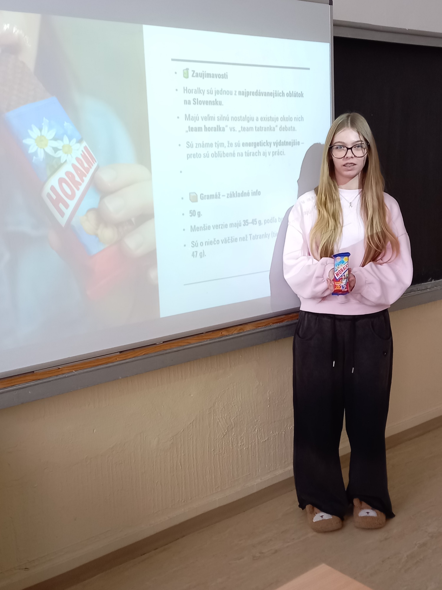 Dňa 22. 05. 2025 žiaci 2. DB v odbore: Obchodný pracovník, prezentovali spoločný projekt s názvom: „Zlatý poklad Slovenska“, zameraný na druh tovaru: bryndza. Bryndza patrí do vyučovacej témy: Potraviny živočíšneho pôvodu.